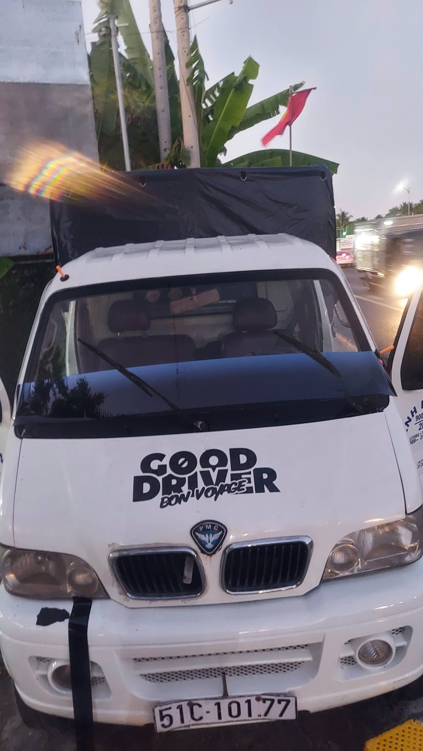 Xe tải PMC 1 tấn kính lái thấp, chạy ngoài nắng nhiều → ánh nắng chiếu thẳng xuống rất khó chịu, dễ lóa mắt, chạy một hồi là mệt.